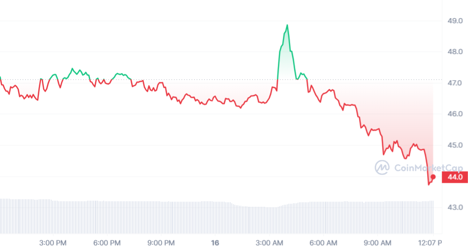 Le cours EGLD est finalement en baisse de 6 % sur les dernières 24 heures et s’échange à 44 $.