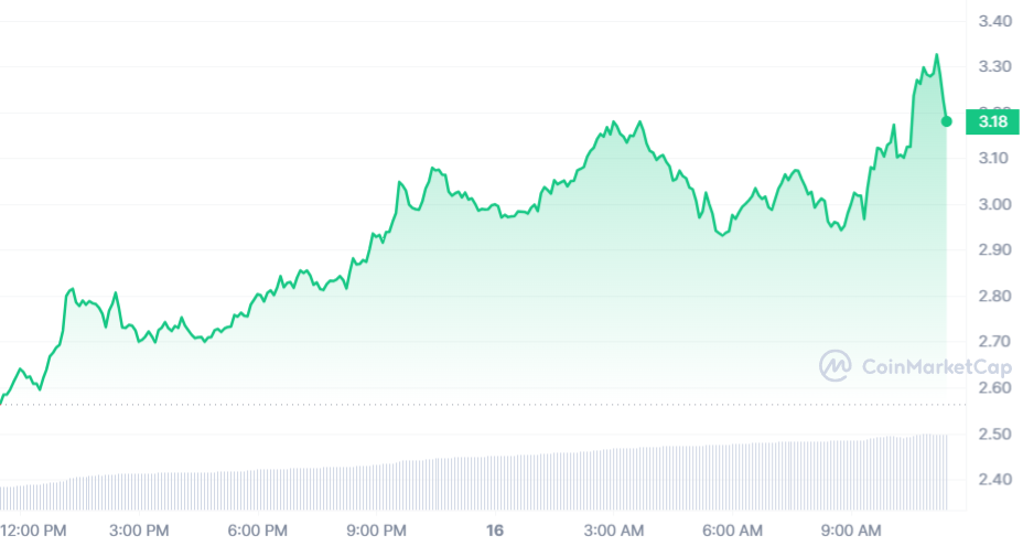 Le cours RNDR est ainsi en hausse de 21,77 % au final, et s’échange maintenant au-dessus des 3 $. Alors que les hausses du début d’année n’avaient pas pu se concrétiser par un passage au-dessus des 3 $, cela semble désormais chose faite. La pièce a même momentanément atteint les 3,40 $.