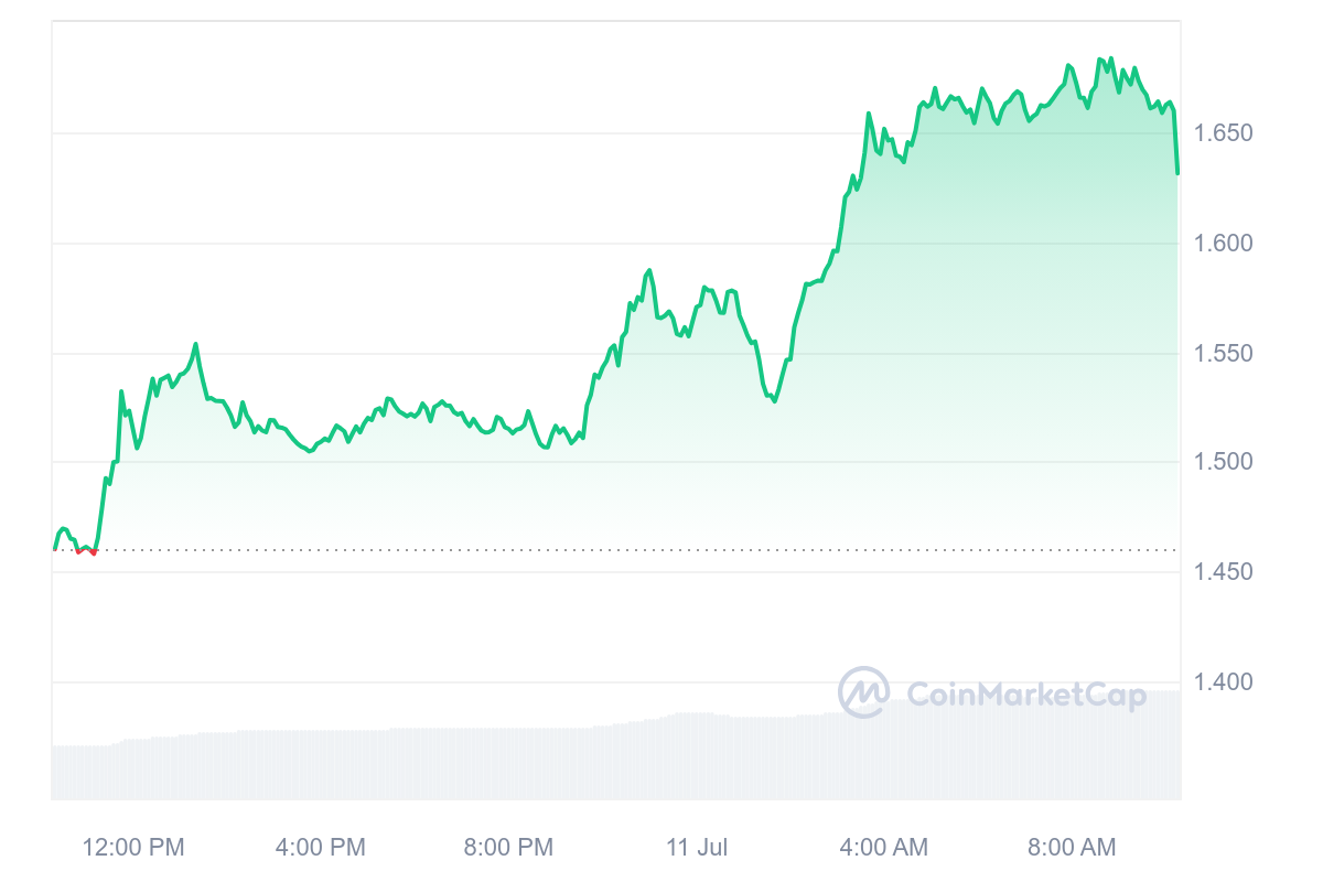 Qui dit première place dit également meilleure performance de la journée pour le jeton STX, qui fait forte impression aujourd’hui en gagnant 12 %. Désormais, la cryptomonnaie de Stacks est valorisée à 1,63 $.