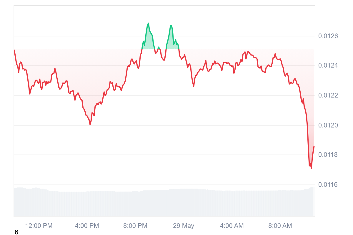 Le meme coin n’a pas la même réussite que son compère SPX et a connu une chute rapide en amont de la rédaction de ce top & flop crypto. PENGU retrace de 4,15 % et tombe à 0,0118 $.