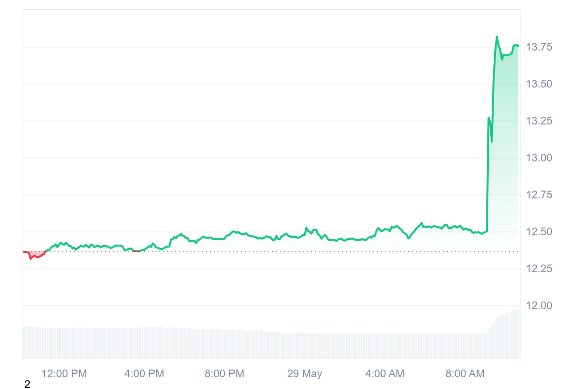 Après une piqûre de rappel, le jeton a explosé en un temps record afin d’assurer un gain supérieur à 10 %. Le résultat final est positif : 11,73 % et un prix de 13,77 $.