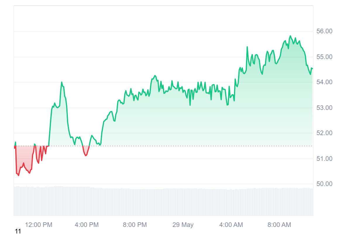 Cette journée semble avoir cette saveur pour le ZEC de Zcash qui assure même plus que le minimum avec un gain de 7,32 % et un prix d’échange de 54,53 $.
