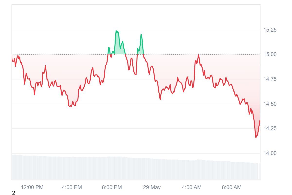 Après avoir brièvement dépassé les 15 $ au cours des dernières 24 heures, le cours INJ a fléchi à 14,32 $ en raison d’une contraction de prix de 3,93 %.