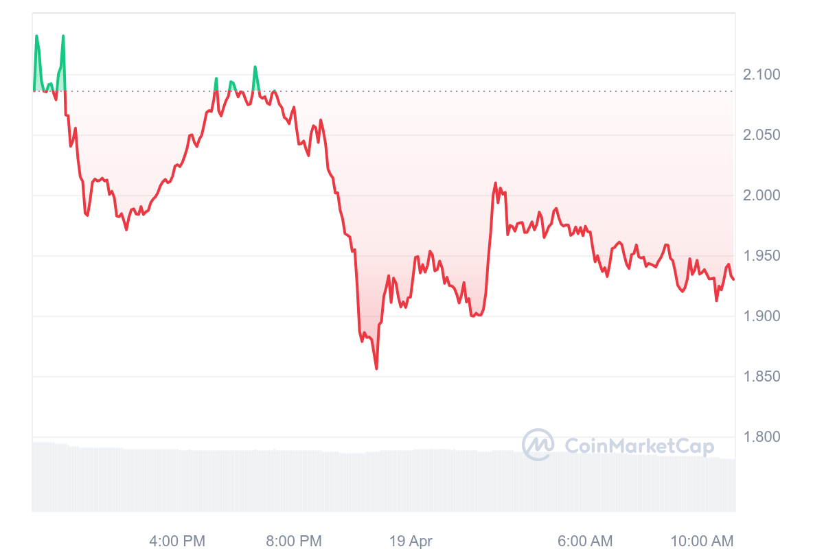 Au moment de rédaction, le CORE est en baisse de 7,50 % et retombe sous les 2 $. Malheureusement, il n’a pas su profiter du Momentum haussier du marché crypto.