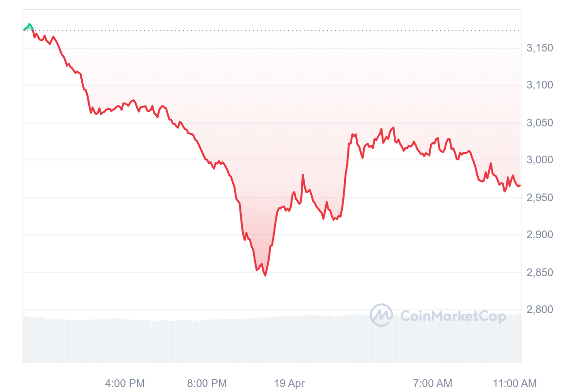 Alors qu’il valait près de 4 000 $ plus tôt cette année, le MKR est une nouvelle fois en baisse, avec une perte de 6,65 %. Désormais, le jeton de Maker est valorisé à un prix de 2 965 $.