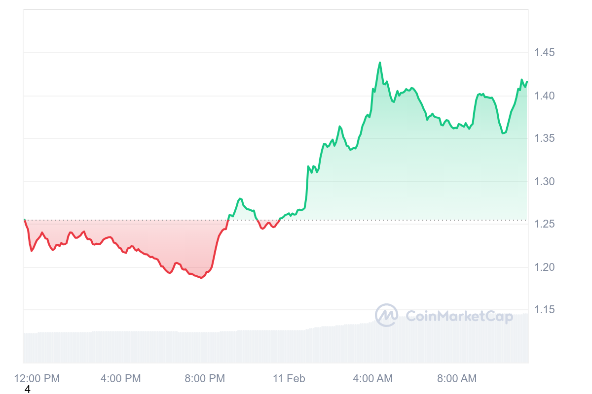 Les efforts sont d’ores et déjà récompensés, avec un jeton VIRTUAL qui est en train de confirmer son retour au premier plan. Au moment de rédaction, l’altcoin IA gagne 12,68 % et s’échange maintenant à 1,41 $.