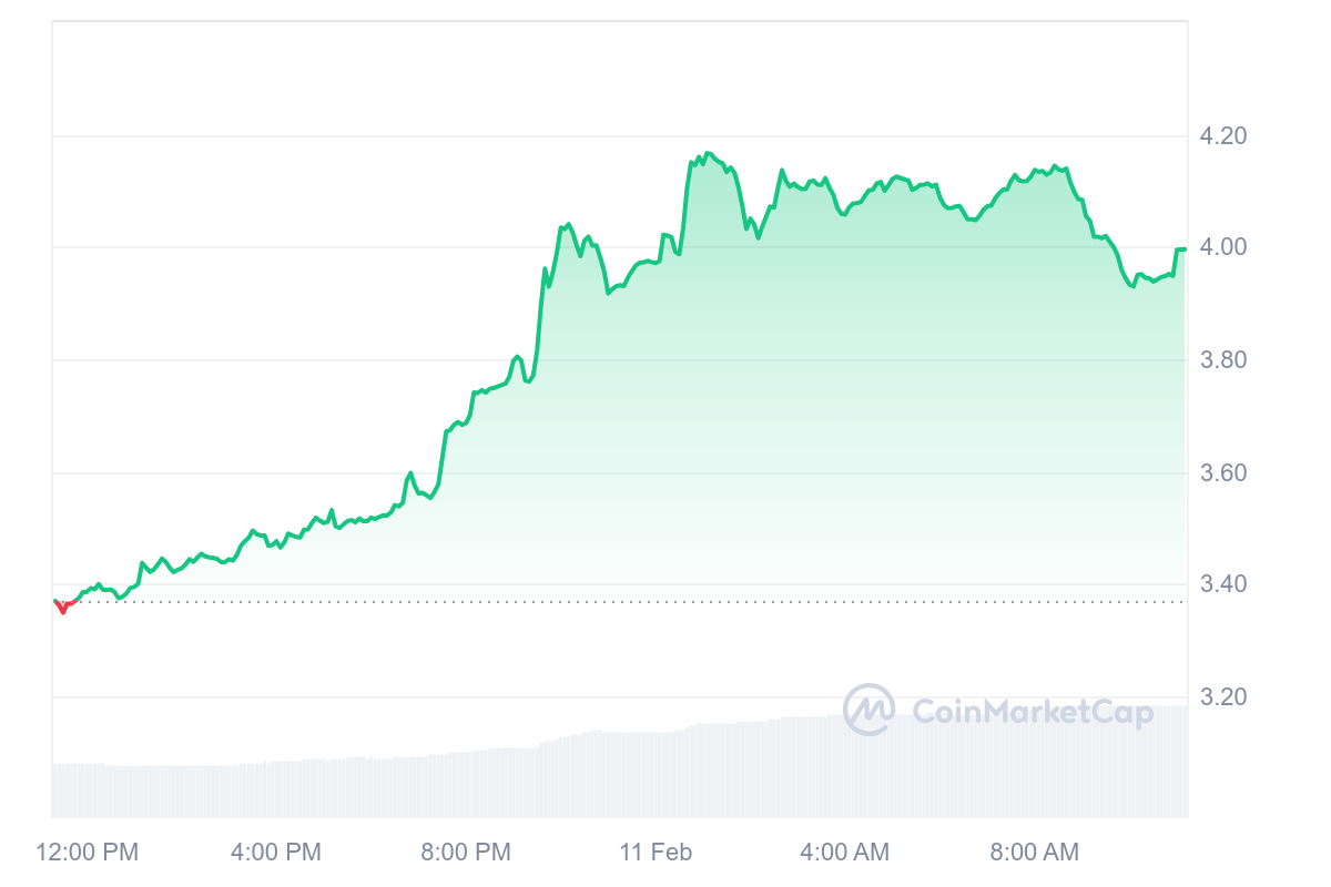 Le cours du HNT s’est bien repris avec un gain journalier extrêmement proche des 20 %. Avec une hausse de 19,31 %, le HNT natif d’Helium atteint aujourd’hui les 4 $.