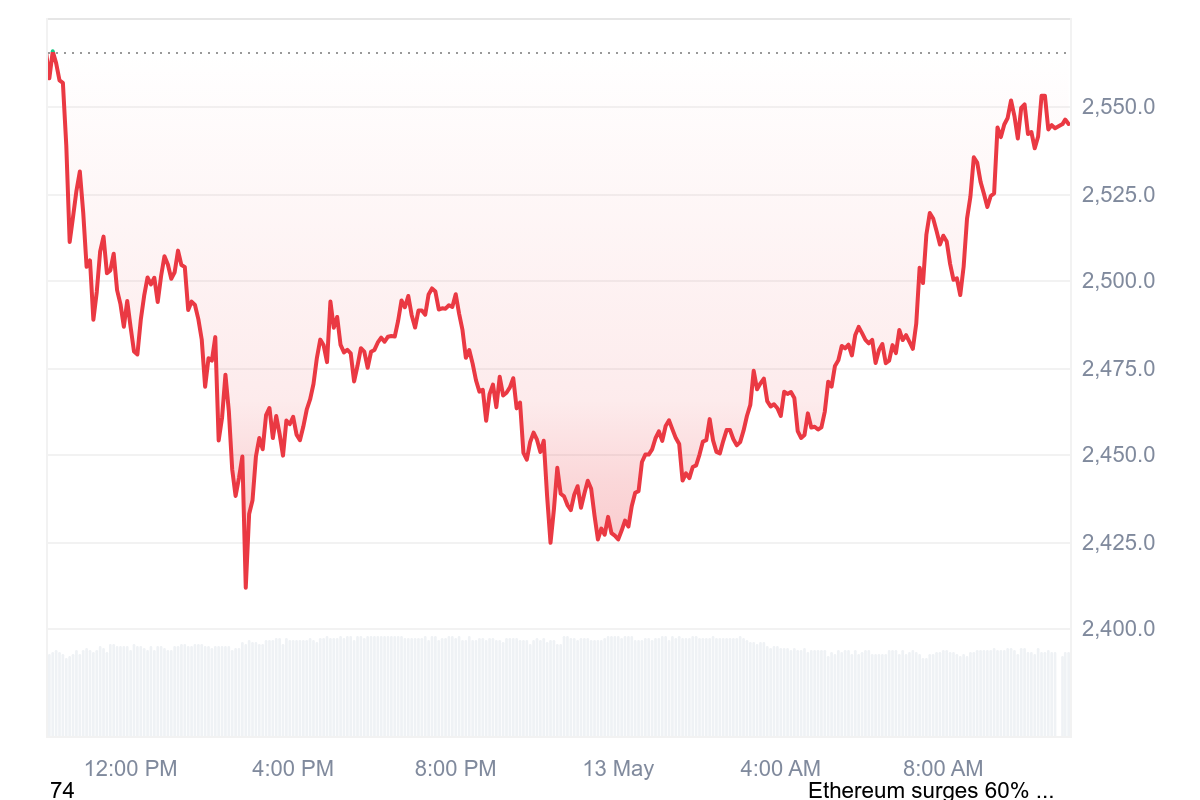 Là aussi, on ne peut pas dire que la performance est impressionnante, mais le jeton s’est bien remis en cette fin de journée volatile. La pièce d’Ethereum se négocie dorénavant à 2 545 $ après ce regain de force.