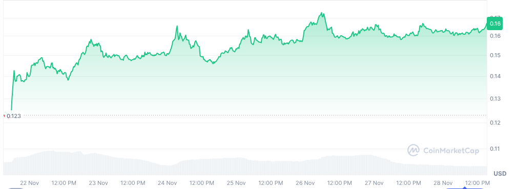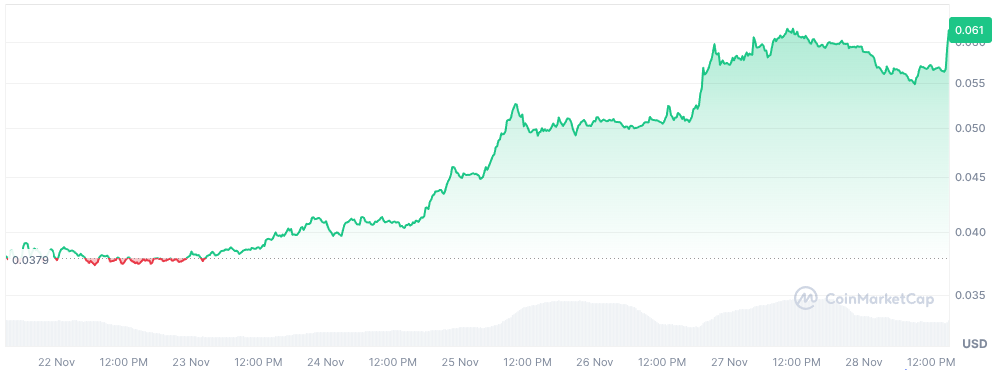 Kaspa (KAS) suit de près avec une envolée de 62 % sur la semaine, culminant à 0,061 $ le 27 novembre.