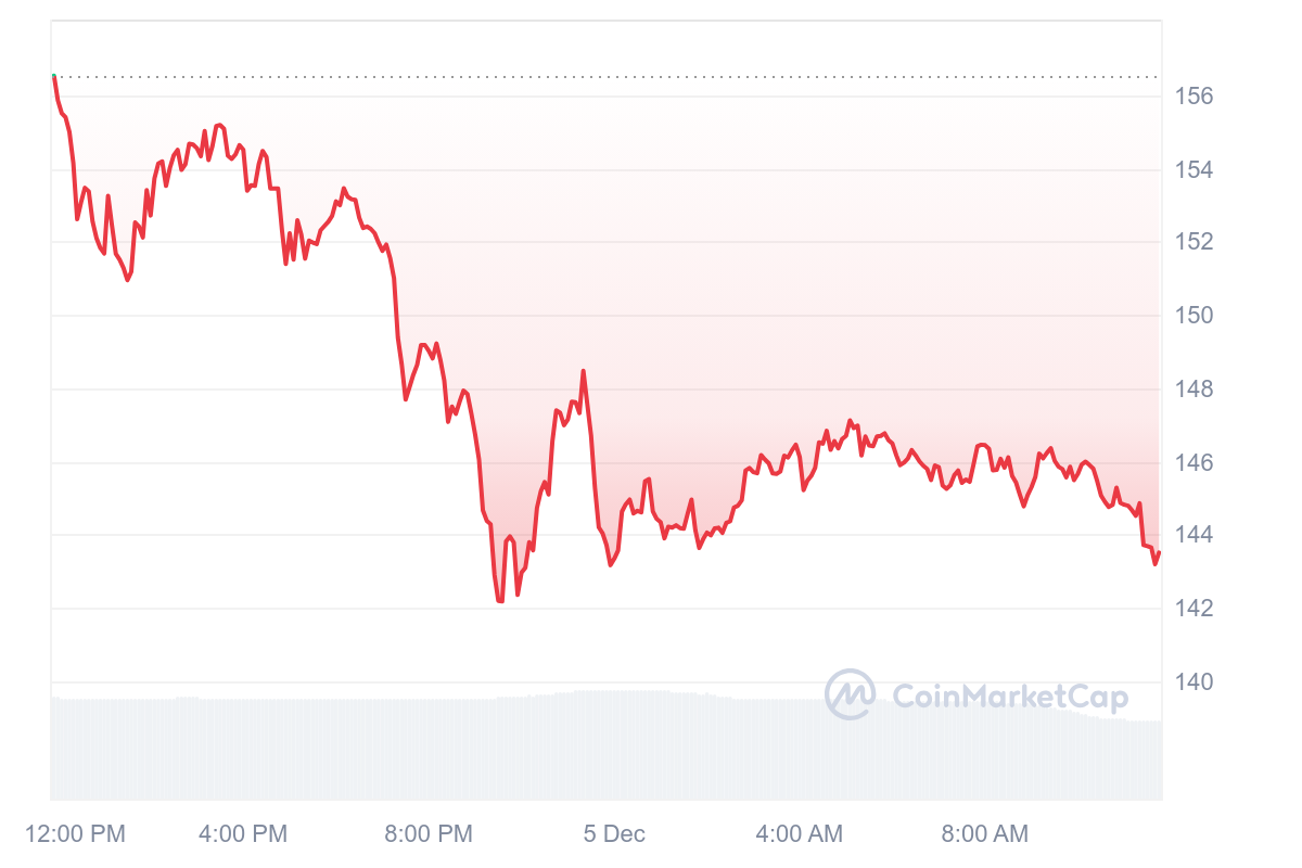 SponsoredLe QNT natif n’a pas vécu la même soirée que le BTC, puisque la chute est de presque 9 %. En conséquence, le cours de l’actif est retombé à un prix de 143,36 $.