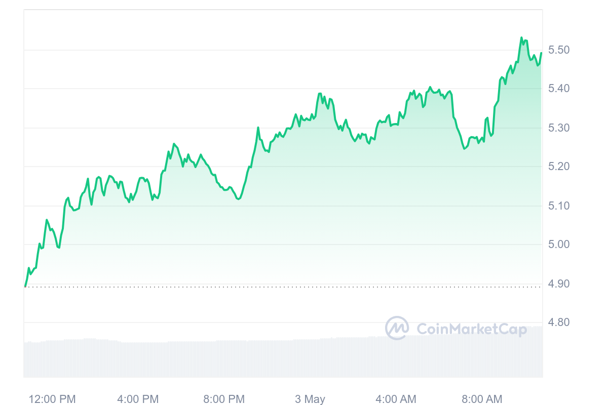 La pièce TON a réalisé une très belle performance en étant également au-dessus des 10 %. En effet, puisque le jeton gagne 12,16 % alors que le prix en profite pour se hisser à 5,50 $.