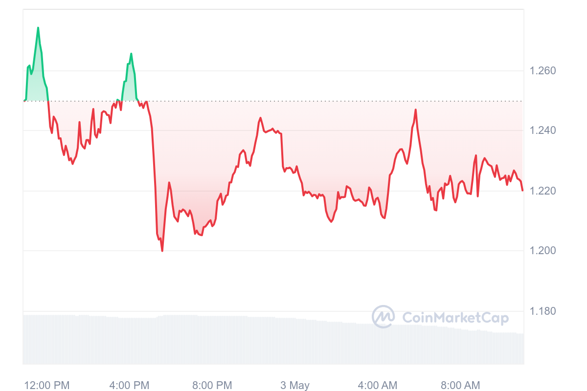 Graphiquement, le cours AXL hésite entre le bon et le mauvais mais tout de même, le jeton perd 2,43 %. Sur les plateformes d’échange, le jeton vaut 1,22 $.