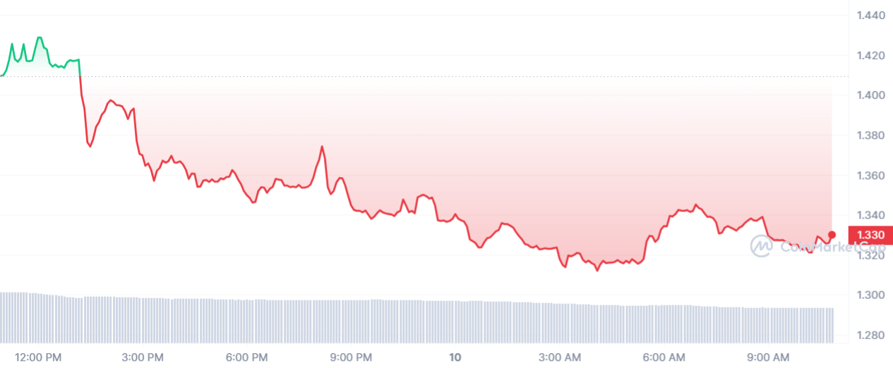 Finalement, le cours BONE est en baisse de 5,53 % sur la journée. C’est bien évidement la pire performance du marché crypto. Désormais, chaque pièce s’échange à 1,33 $.