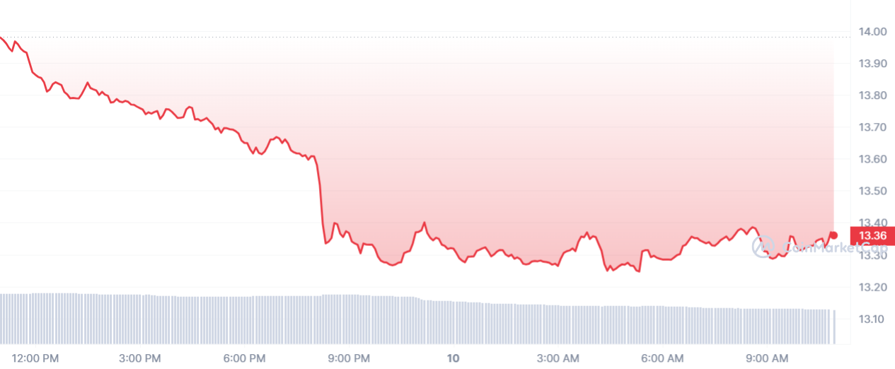 Le cours AVAX s’échange à 13,36 $ après avoir connu une nouvelle chute de 4,35 % sur les dernières 24 heures.