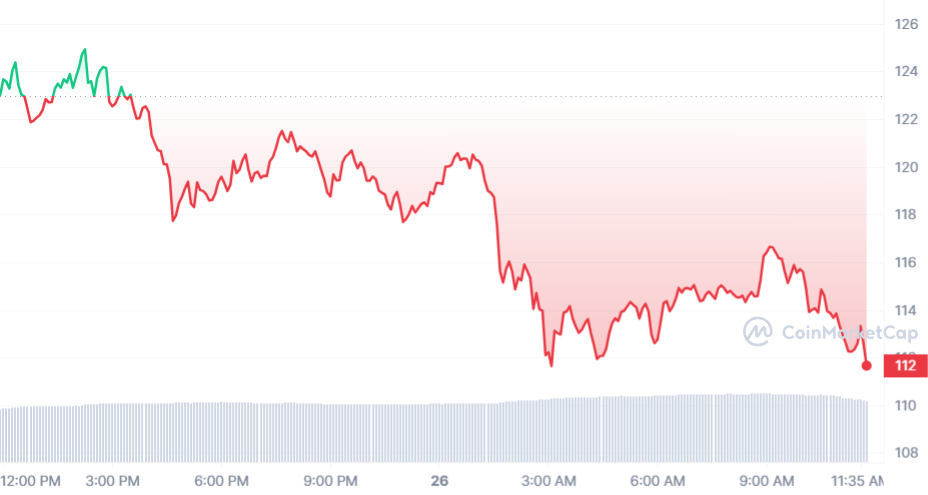 SponsoredBien perché au-dessus des 122 $ hier, le cours Solana (SOL) est retombé à 111,68 $. Cela reste intense, avec une évolution positive de 95 % sur le dernier mois.