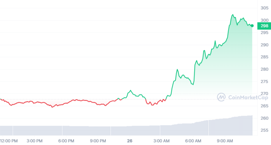 En conséquence, la baisse du mois dernier a été résorbée, et plutôt avec facilité au cours de ces derniers jours. Le cours du BNB a même réussi à dépasser les 300 $ pour la première fois depuis le mois de juin. Au moment de rédaction, la pièce s’échange toutefois à 298 $ après cette très belle hausse de 11 %.
