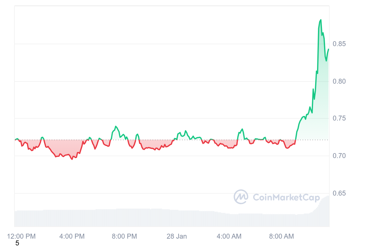 En effet, puisque le cours du MOVE a connu une hausse de prix aussi rapide qu’insolente après l’annonce d’achats de la part de World Liberty Finance, le projet crypto lié à Trump. Ainsi, les gains sont de 16,27 % suite à ces achats et le jeton remonte à 0,84 $.
