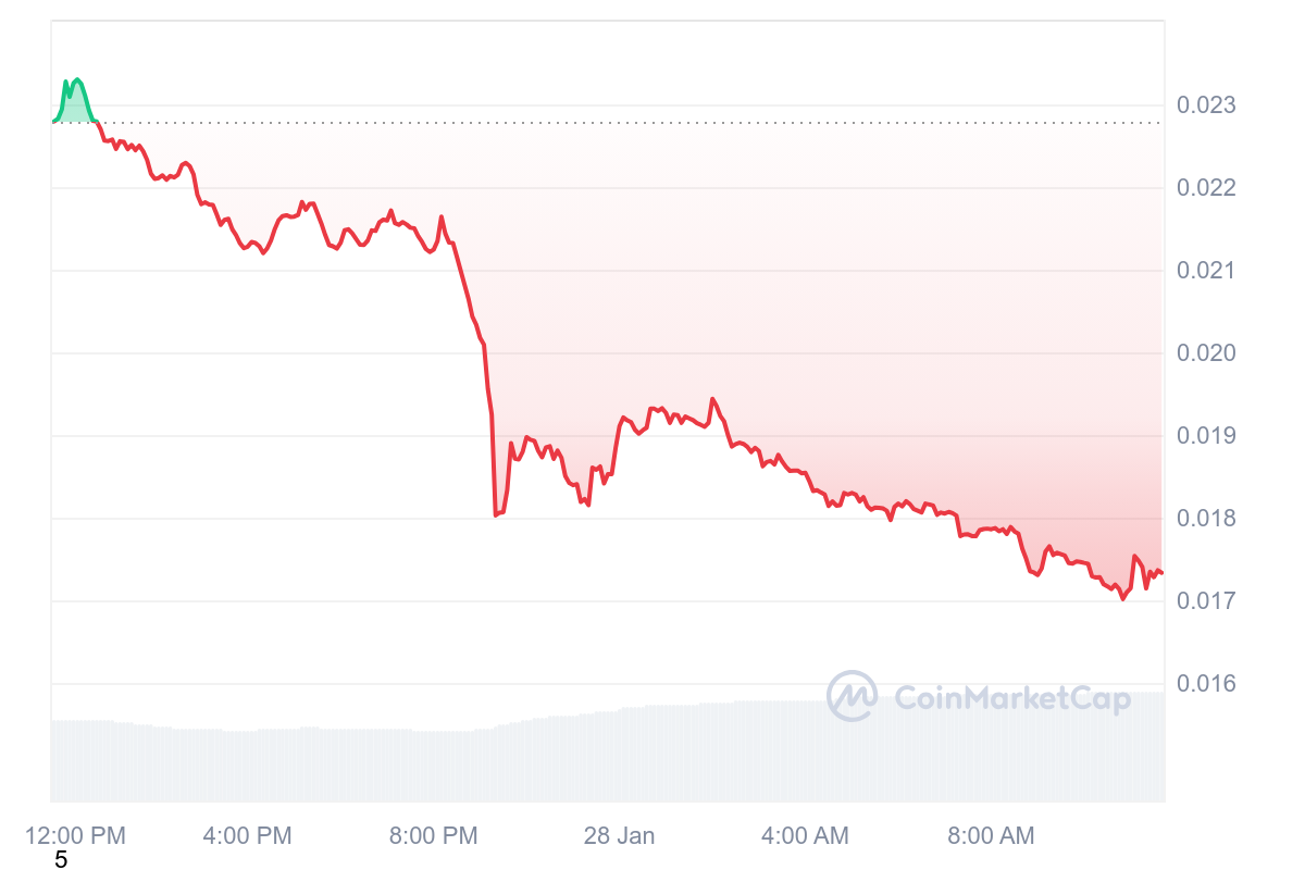Le cours de PENGU a en effet connu une énième désillusion et retombe encore. Les pertes sont lourdes avec un -24 % ce mardi et la perte des 2 centimes (0,017 $).