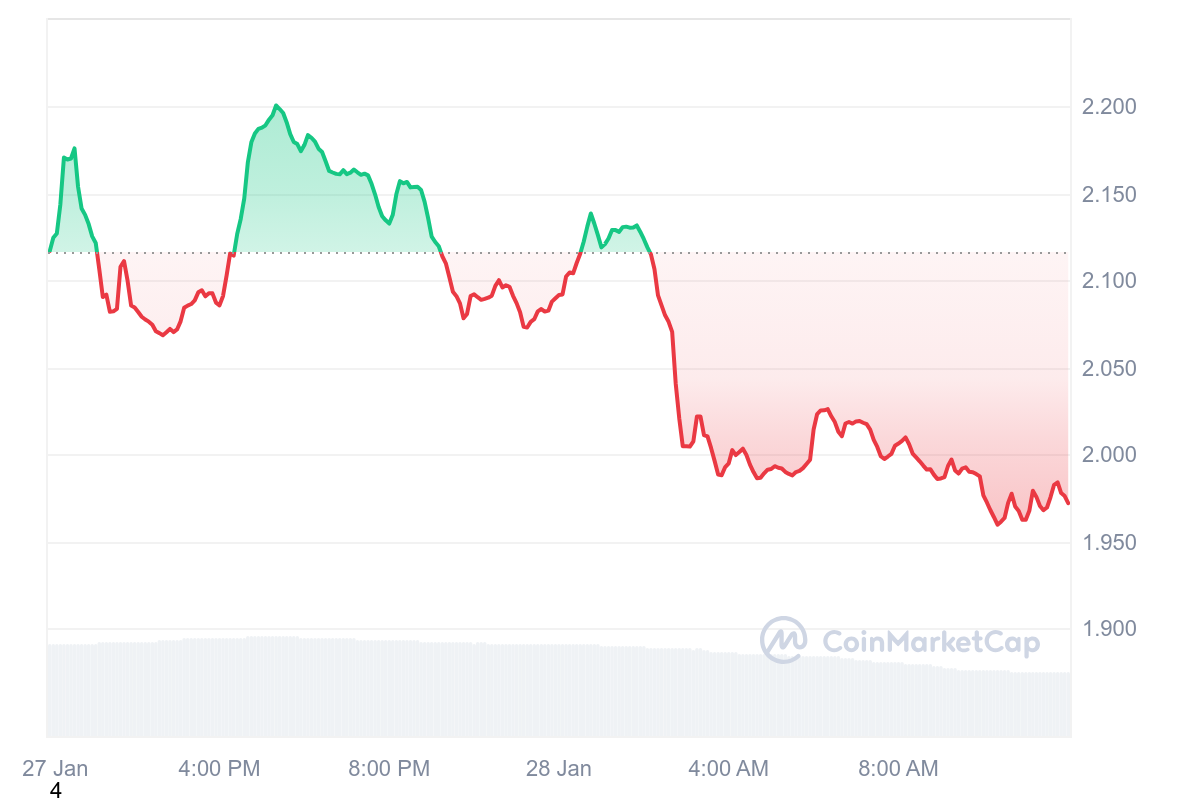 VIRTUAL fait partie de ceux-là avec une nouvelle perte à assumer. Désormais, VIRTUAL est sous les 2 $ en raison de ce retracement de 6,37 %.