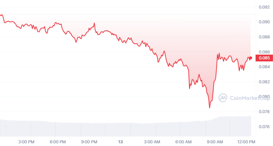 Le KAS coince donc de quelques pourcents aujourd’hui, ce qui le fait retomber à 0,085 $. La chute pour sa part se solde a exactement 6,35 % sur 24 heures.