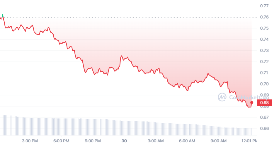 SponsoredAu moment de rédaction, l’actif STX essui une baisse globale de 10,59 % sur les dernières 24 heures avec un prix d’échange actuel de 0,68 $.