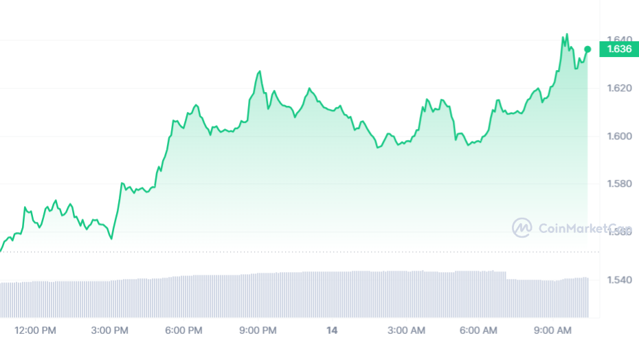 Le cours RUNE réalise la troisième meilleure performance du jour grâce à cette hausse de 5,35 % sur les dernières 24 heures. Au moment de rédaction, chaque pièce du projet s’échange à 1,63 $.