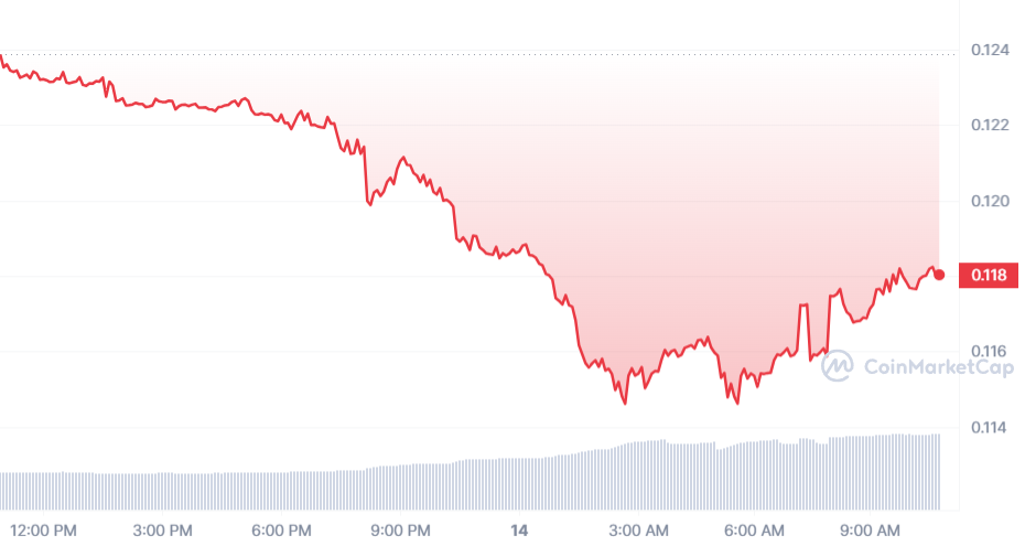 Au moment de rédaction, le cours KLAY est en baisse de 4,08 % et talonne de très près le ASTR. De par cette baisse, le prix de l’actif retombe à 0,118 $.