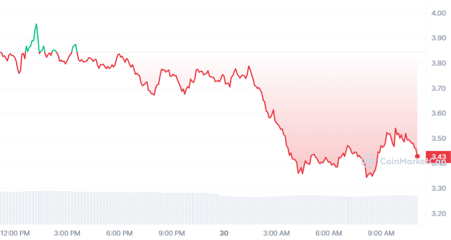 SponsoredAlors que le WIF était en passe de remonter au-dessus des 4 $, c’est finalement la dégringolade. D’ailleurs, l’actif perd en hauteur actuellement alors que de nombreux altcoins remontent dans le sillage du BTC. Désormais, l’actif s’échange à un prix de 3,43 $.