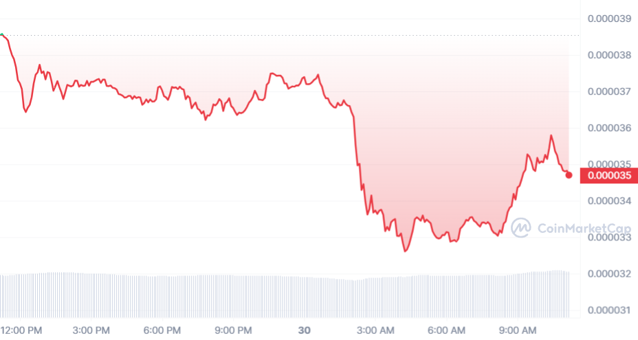Actuellement, le cours du BONK cherche à se stabiliser après cette once de volatilité. Désormais, l’actif s’échange à 0,000035 $ après cette baisse de 9,77 %.