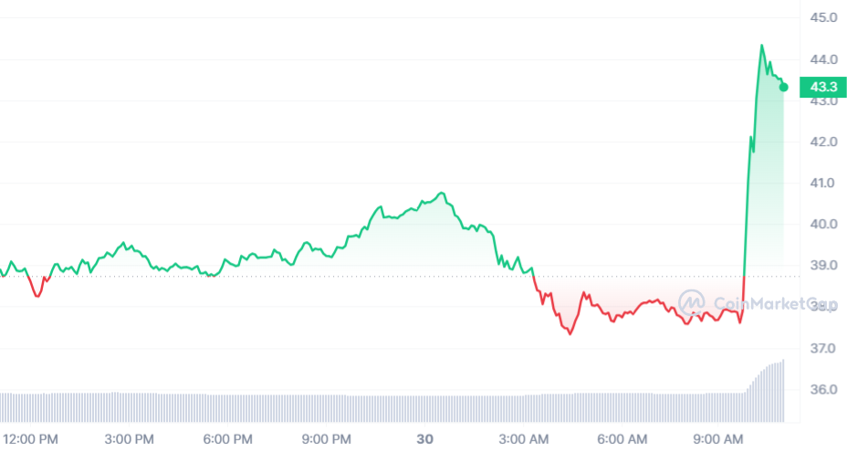 De manière fortement similaire à ORDI, Arweave est également en forte hausse aujourd’hui. La dynamique est similaire, avec une explosion toute récente et un prix qui se rapproche des 50 $.