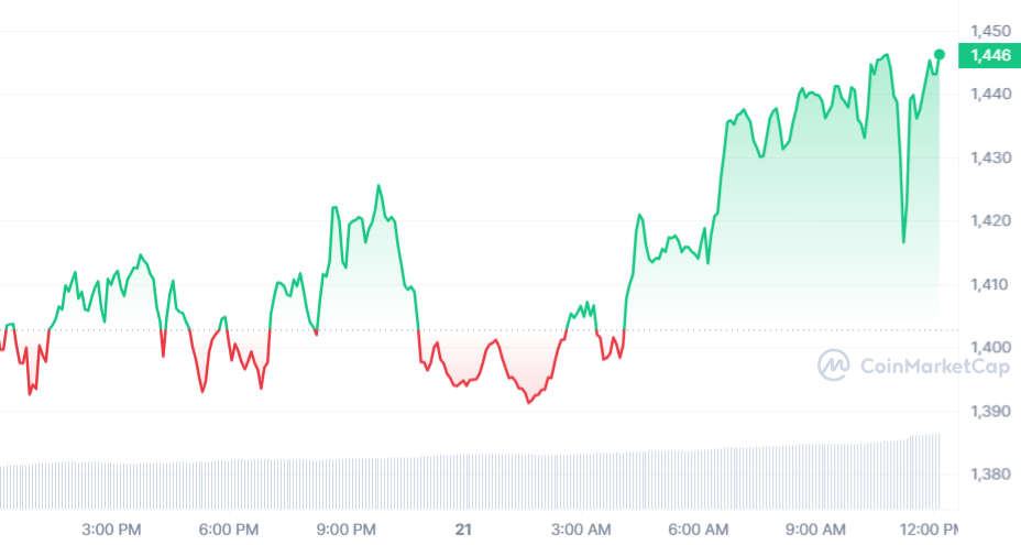Le cours MKR est finalement en hausse alors même que le marché crypto a souffert. La pièce gagne 2,42 % sur la journée, et s’échange à 1 437 $.