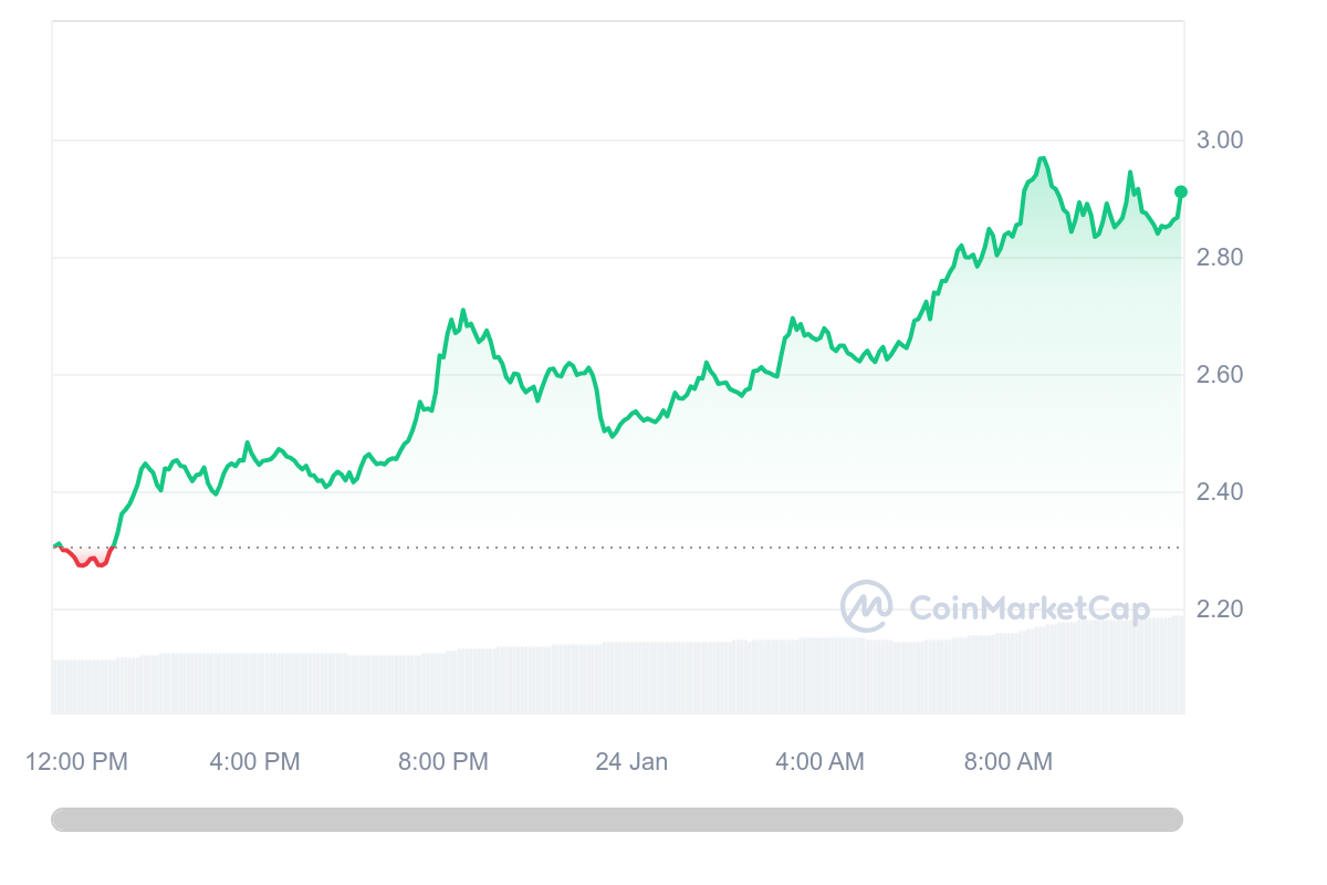 Avec beaucoup de vert sur le marché crypto, le cours du MANTA a gagné 26,77 % en une seule et unique journée. Au moment de rédaction, un nouvel ATH vient d’être signé à 2,97 $. Avec les trois en ligne de mire, la pièce s’échange désormais à 2,91 $. Voilà une cryptomonnaie qui ne passe pas inaperçue depuis son listing initial sur Binance.