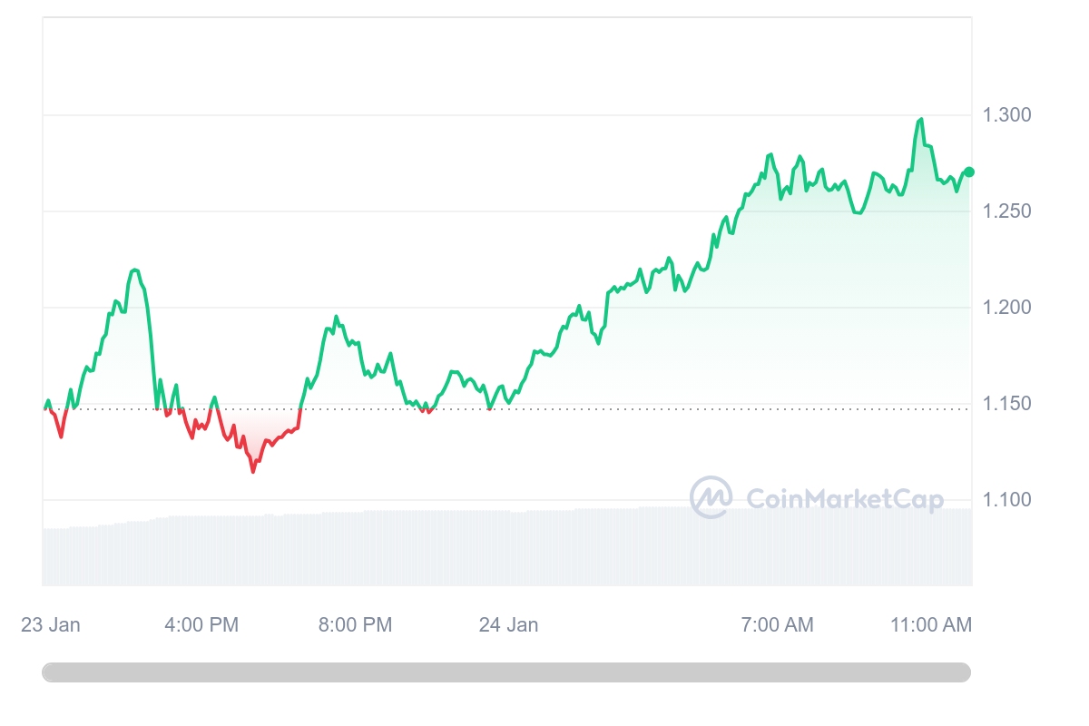 Le cours du SUI est finalement en hausse de 10,30 % aujourd’hui et fait une entrée plus que remarquée dans le top & flop crypto du jour. Le jeton vaut maintenant 1,30 $ sur les principaux exchanges.