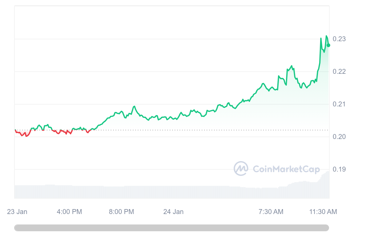 Le cours IOTA est en hausse de 12,84 % ce mercredi. Dorénavant, le jeton s’échange pour 0,23 $ grâce à cette très belle poussée.