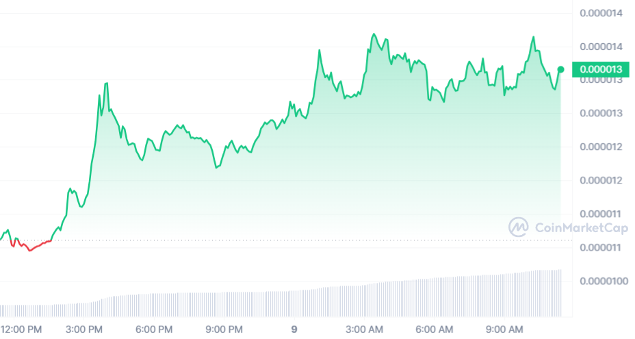 Au final le cours du BONK est en hausse de 22,30 % et perd de nouveau un zéro à son prix. Désormais, la pièce s’échange à 0,000013 $.