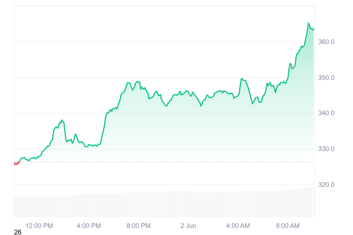 Mieux encore, le XMR de Monero profite d’une hausse qui dépasse les 10 % afin de remonter à 363,42 $.