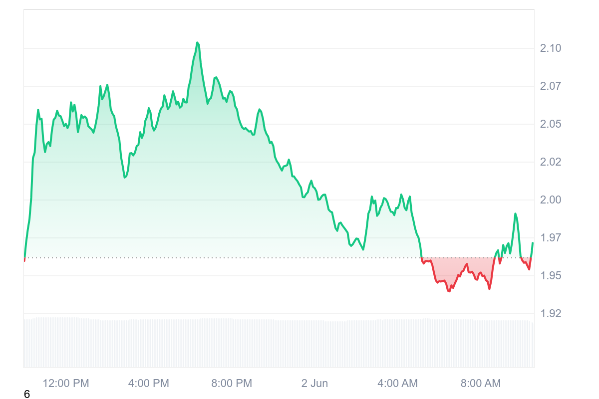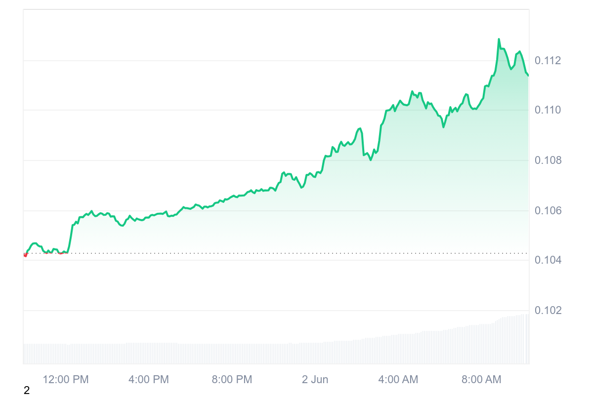 Cette fois-ci, c’est par contre la hausse qui est privilégiée pour un KAIA en hausse de 6,58 % et qui fait son grand retour dans les tops du jour. Le jeton se négocie désormais à 0,11 $.