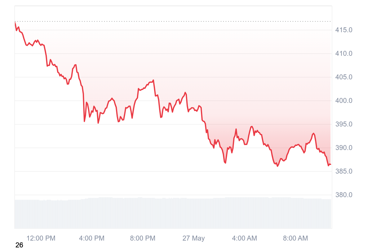 Sans doute en raison d’une hausse intense depuis plusieurs semaines, le cours du XMR opte pour la correction avec un prix d’échange de 386 $ qui a perdu 6,22 %.