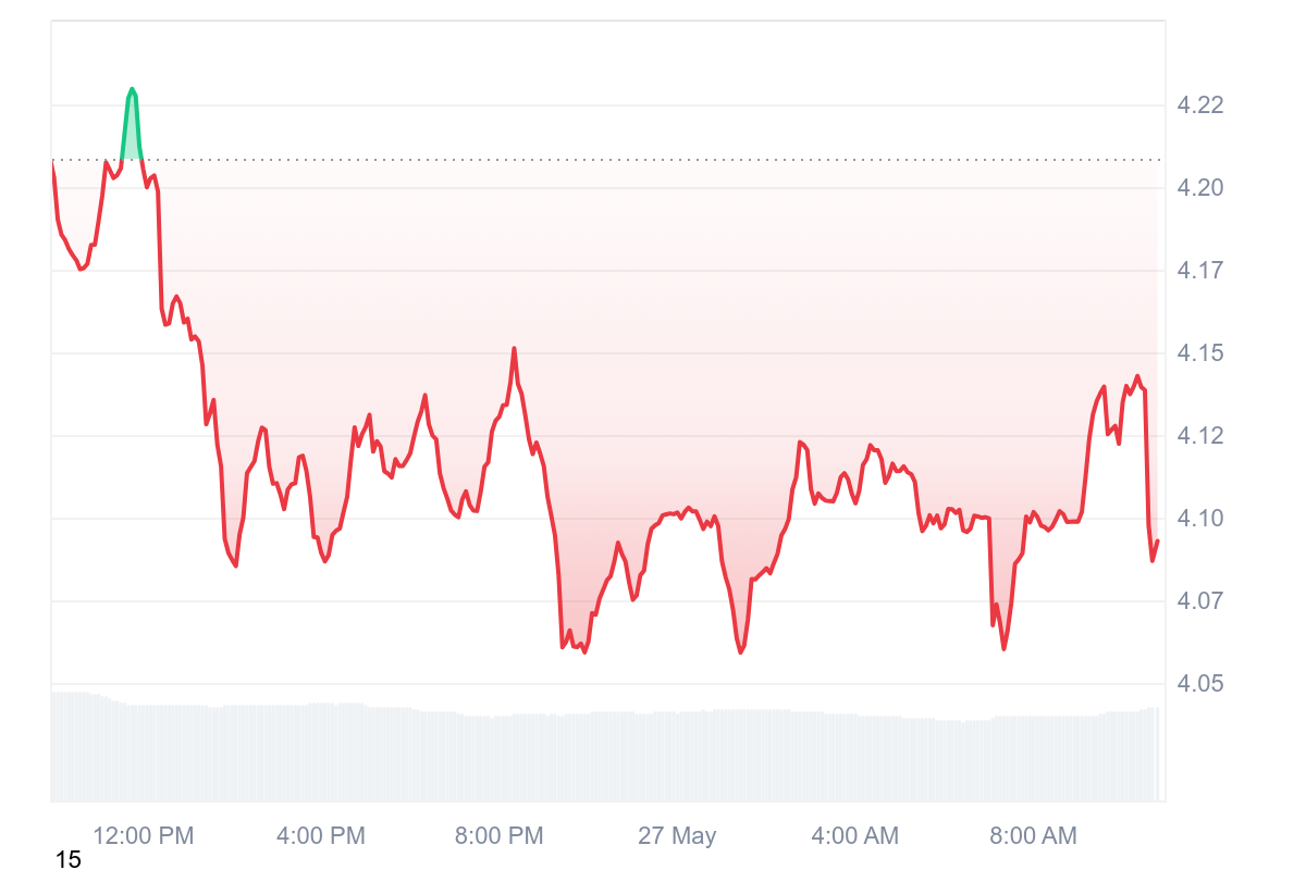 La pièce rebrousse chemin et accuse un léger repli de 2,11 % au cours des dernières 24 heures.