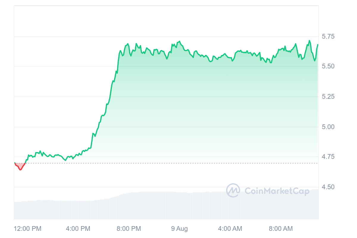 Au final, le TIA de Celestia reprend de la hauteur et corrige les erreurs de la veille. Il ne se sera pas fait prier pour remonter avec une performance incroyable (20,84 %) et un prix de 5,68 $.
