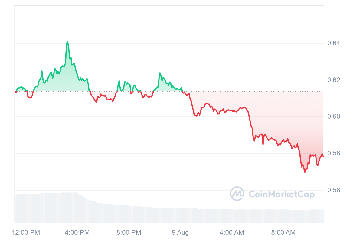 Aujourd’hui, la crypto de Ripple fait nettement moins bien avec une perte de vitesse au final plutôt logique pour le XRP. La chute est de 5,40 % alors que le prix retombe sous les 0,60 $.