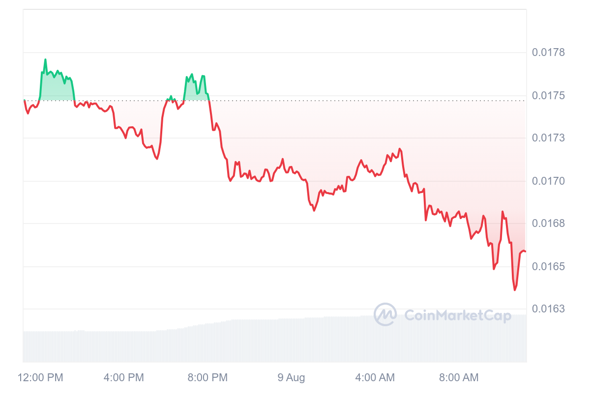 SponsoredC’est GALA qui est le premier loser du jour, avec un prix qui a encore une fois du mal à décoller. Le GALA perd finalement 5,43 % et s’échange à 0,016 $.
