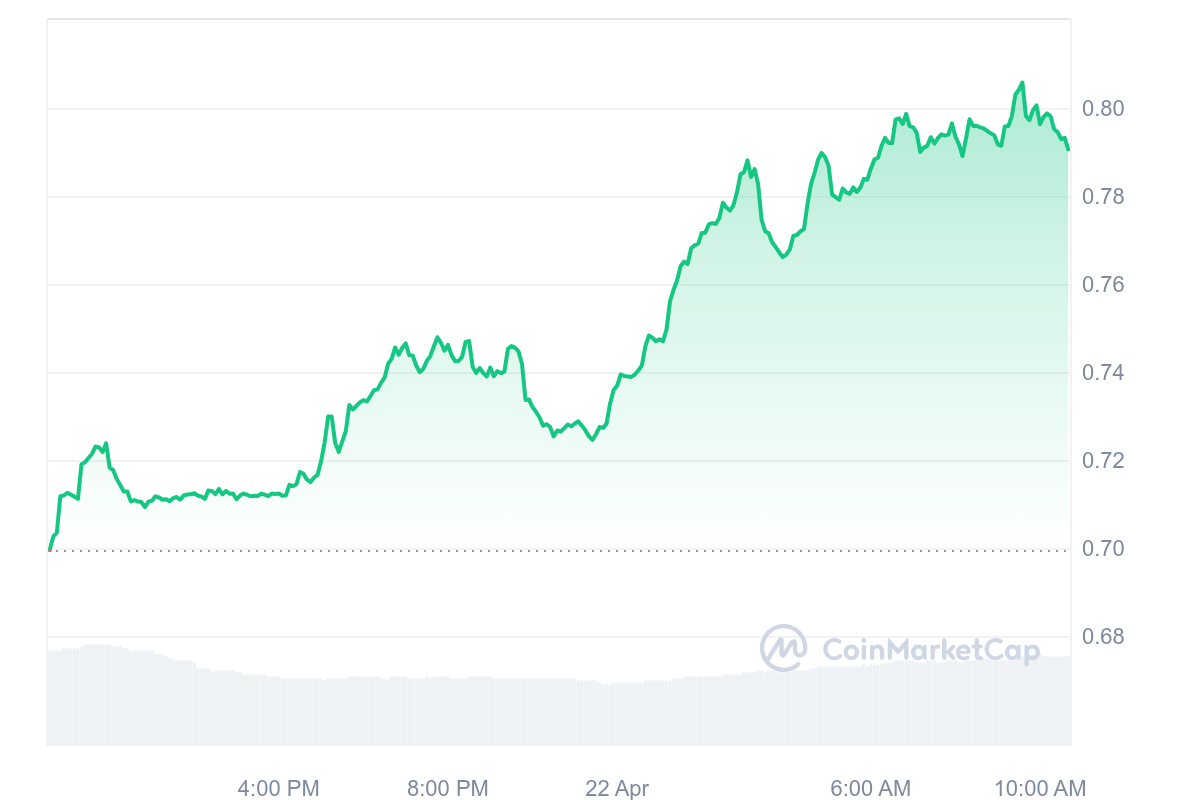 Ainsi, le projet AIOZ Network arrive à placer son jeton tout en haut du classement avec un gain impressionnant de 12,45 % pour AIOZ et un prix qui s’élève jusqu’à 0,80 $.