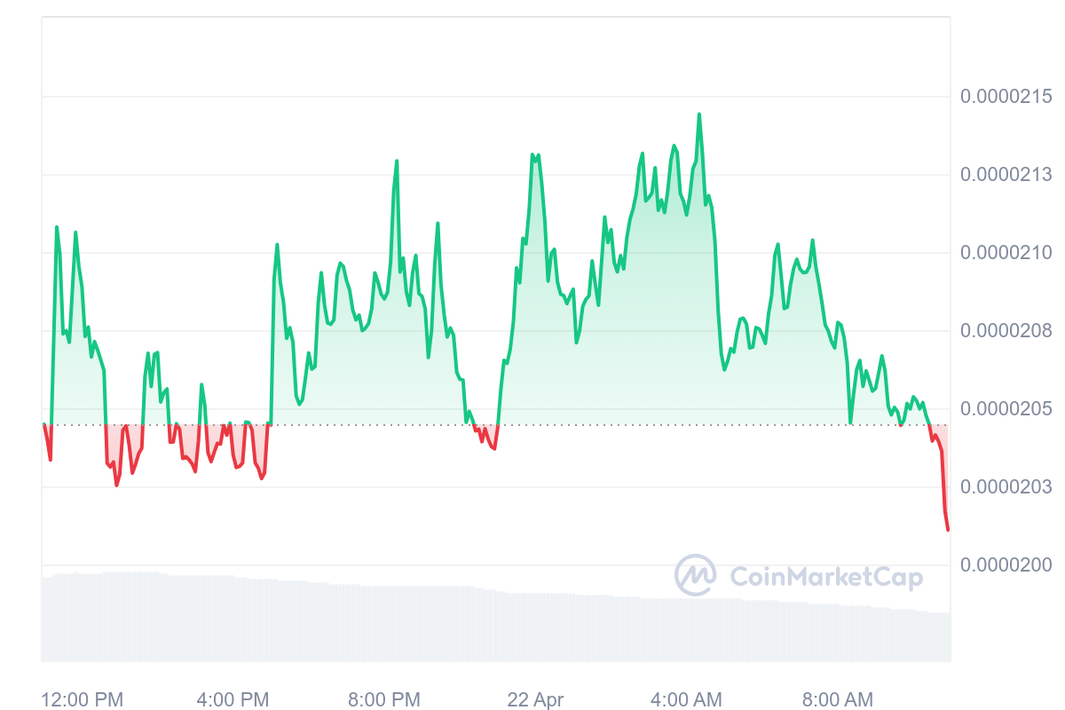 Malgré tout, rien d’affolant pour le moment puisque le BONK ne perd que 2,18 % et s’échange maintenant à 0,00002 $.