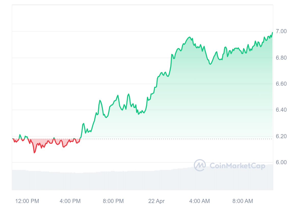 En hausse de 12,28 %, le cours du NEAR fait presque comme AIOZ et SEI. Au moment de rédaction, ce bond lui a permis d’atteindre les 7 $.