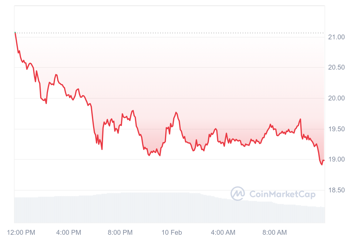 On pense malheureusement à DEXE qui est retombé et a, une fois de plus, perdu les 20 $. Le jeton se négocie actuellement à 18,98 $ après ses pertes de 9,81 %.