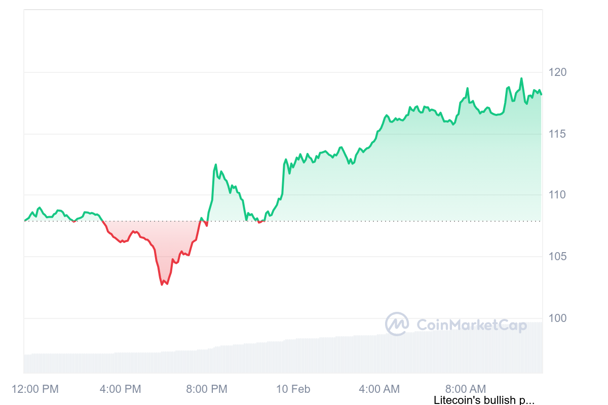 Sur la journée, le cours du LTC s’est revalorisé positivement, avec un gain qui tourne autour des 10 %. Désormais, la pièce du Litecoin s’échange à 118,16 $.