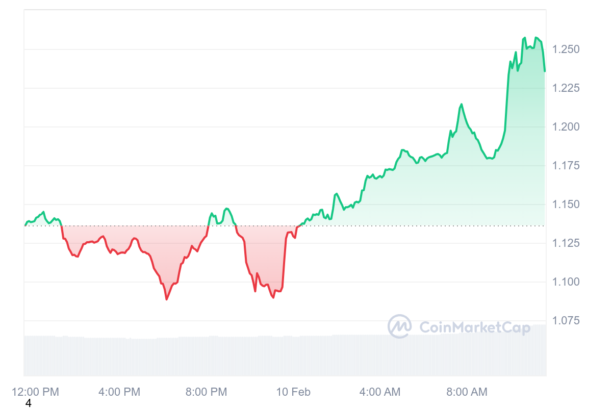 La cryptomonnaie VIRTUAL est donc en hausse aujourd’hui, enregistrant un gain de 8,73 %. Cette évolution favorable à VIRTUAL fait ainsi remonter le prix à 1,24 $.