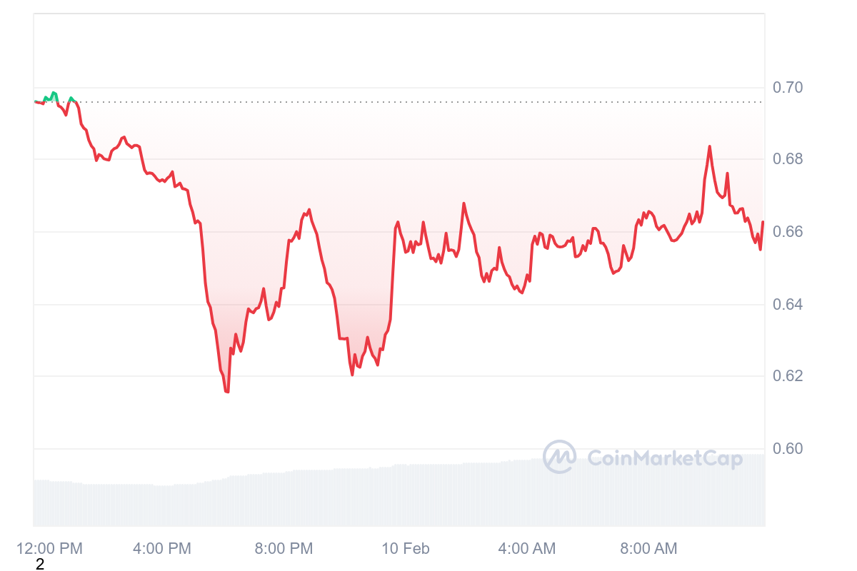 Les performances sont négatives, avec un meme coin qui reperd une fois de plus aujourd’hui. Avec 4,74 % de baisse, le cours du WIF est maintenant de 0,66 $.