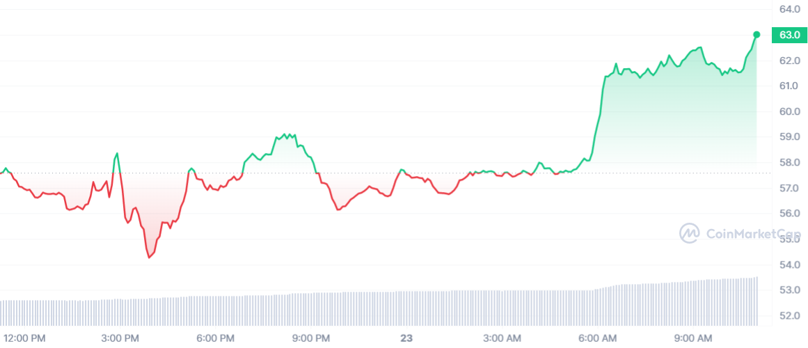 Sur la journée, le cours DASH est donc en augmentation de 9.75 % avec un prix d’échange de 63 $. Une aubaine pour le marché crypto avec certaines cryptos qui semblent s’être détachées de Bitcoin, du moins pour la journée.